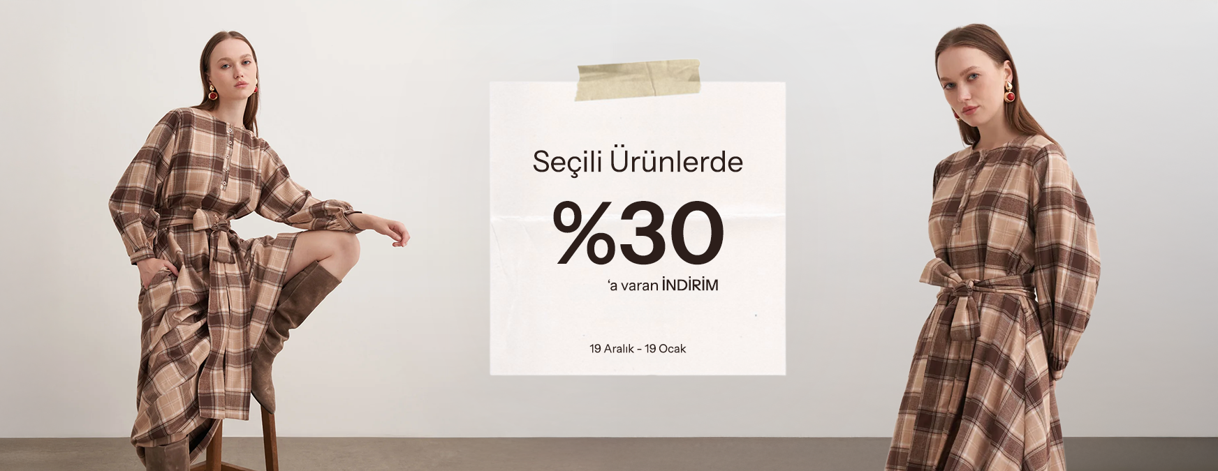 Ekose Kareli Kuşaklı Uzun Elbise
